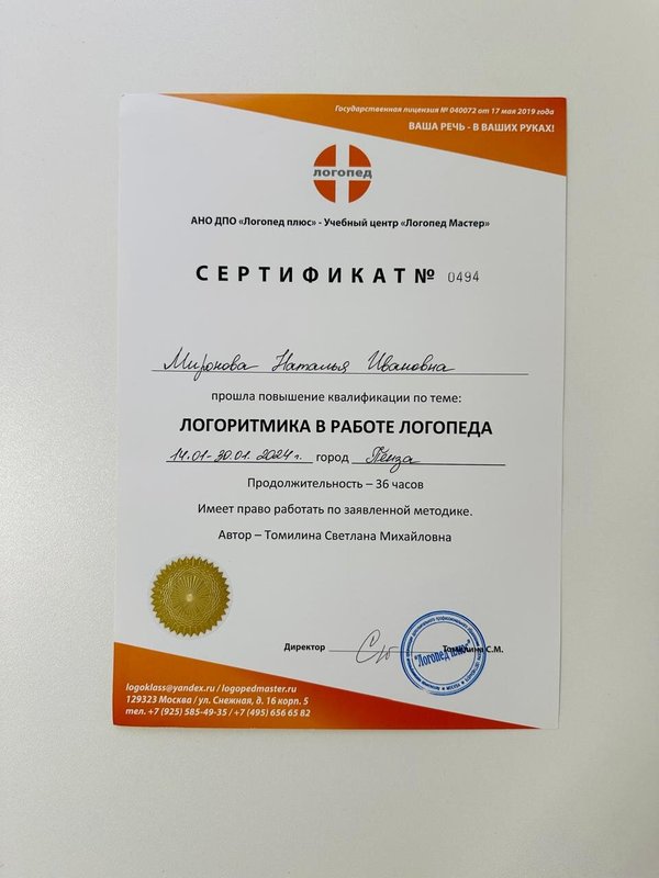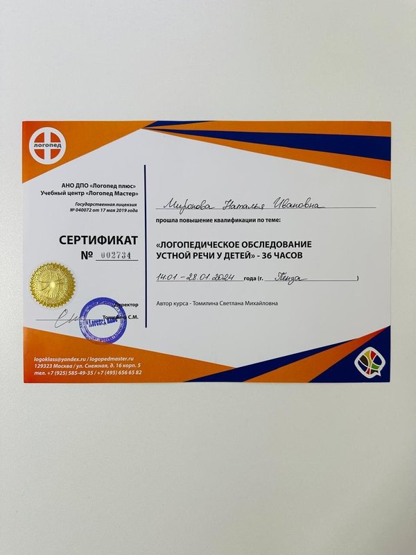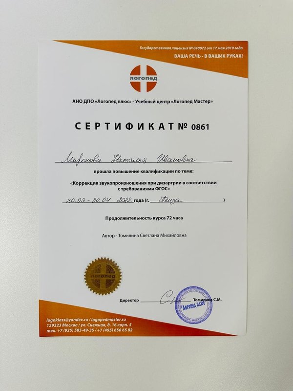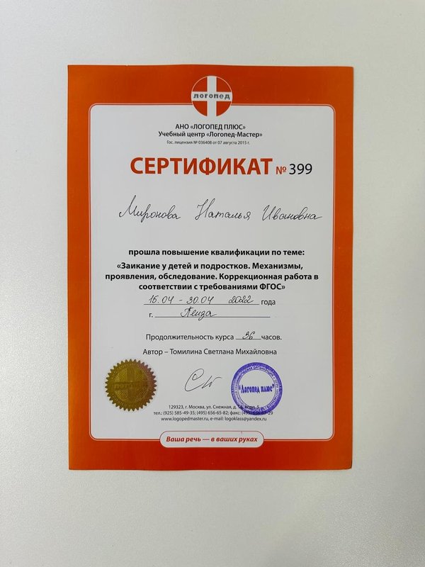Логопед Наталья Ивановна — грамотный логопед и приятный человек. Я ценю её профессионализм, после занятий вижу положительную динамику у своего ребёнка. Результаты работы педагога очевидны, а сам подход вызывает у нас полное доверие.
