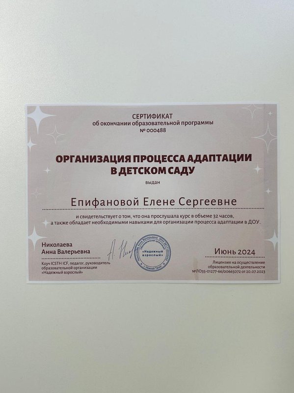 Нам очень нравится наш детский сад, мы полностью удовлетворены руководством, питанием, занятиями и современной обстановкой. Педагоги, воспитатели и администрация — замечательные. Раньше с нами работала Елена Сергеевна, а теперь — Ольга. Воспитатели проявляют доброту, отзывчивость и заботу о наших детях, как о своих собственных. В садике постоянно проходят развивающие занятия, и ребёнок с удовольствием идёт туда и приходит домой счастливый.